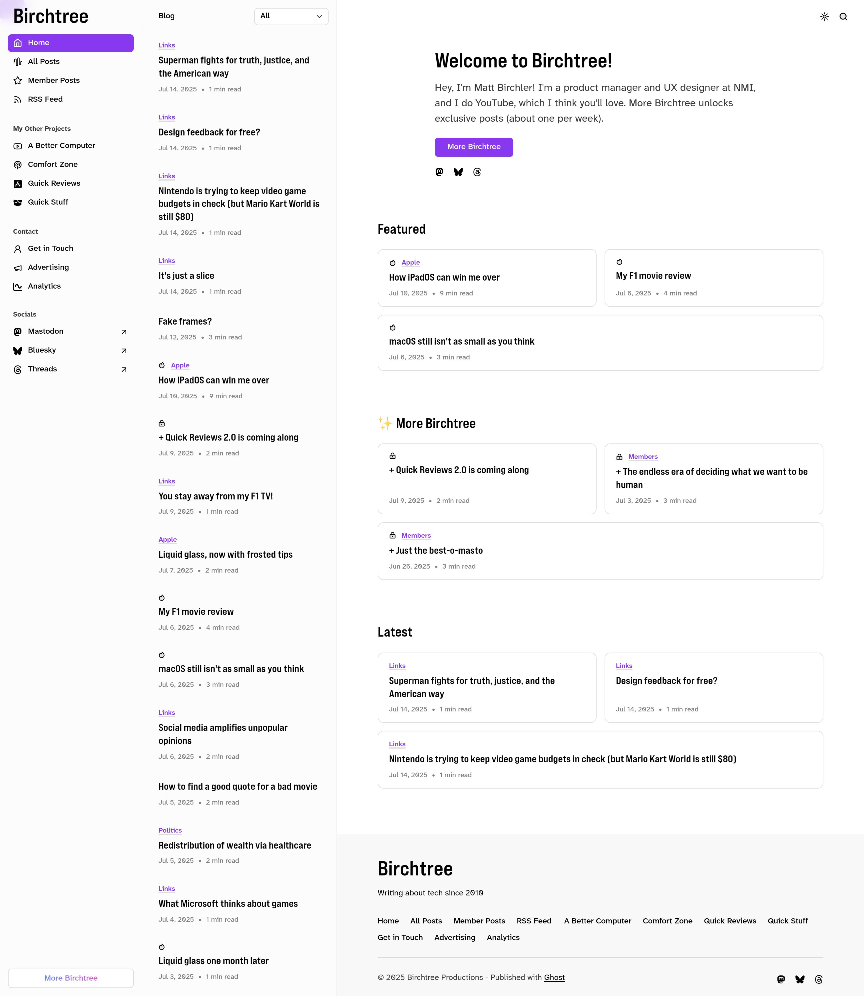 • Integrate custom social links that aren't available in Ghost by default, easily connecting your visitors to your social presence.